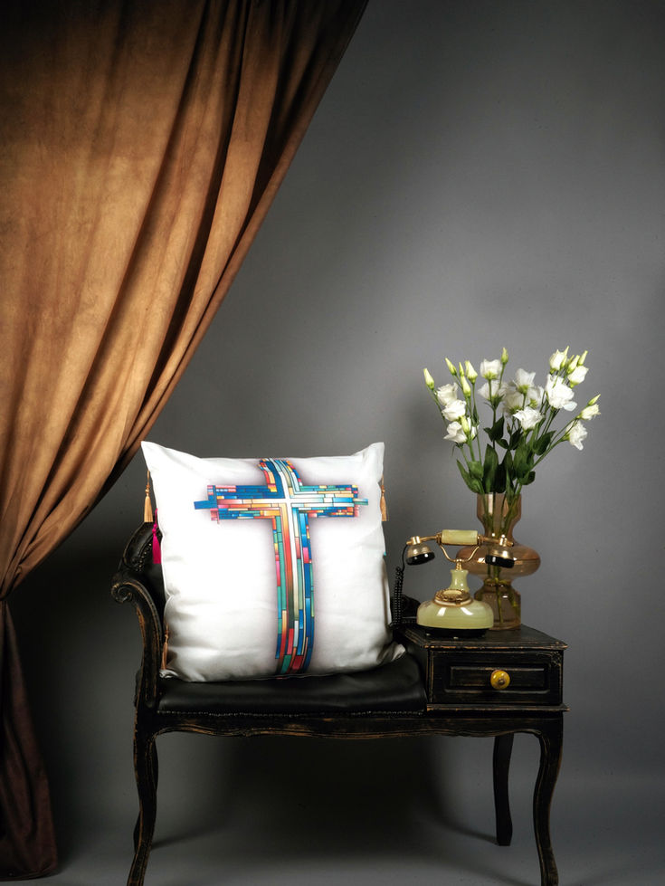 Le coussin "Le Chemin, la Vérité et la Vie" est un hommage au chemin spirituel chrétien, transformé en une oeuvre d'art moderne, prêt à embellir votre intérieur.